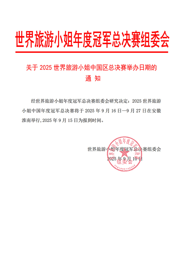 关于2025世界旅游小姐中国区总决赛举办日期的通知
